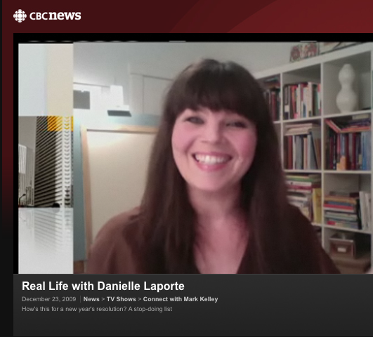 So seriously, consider this a poll. WHAT WILL YOU STOP DOING FOR 2010? What ACTIVITIES are coming OFF your to-do list? What will create more space when you get it off your plate? This will be the topic for my CBC TV segment this week and I'm trolling for your chutzpah and boundary-championing.