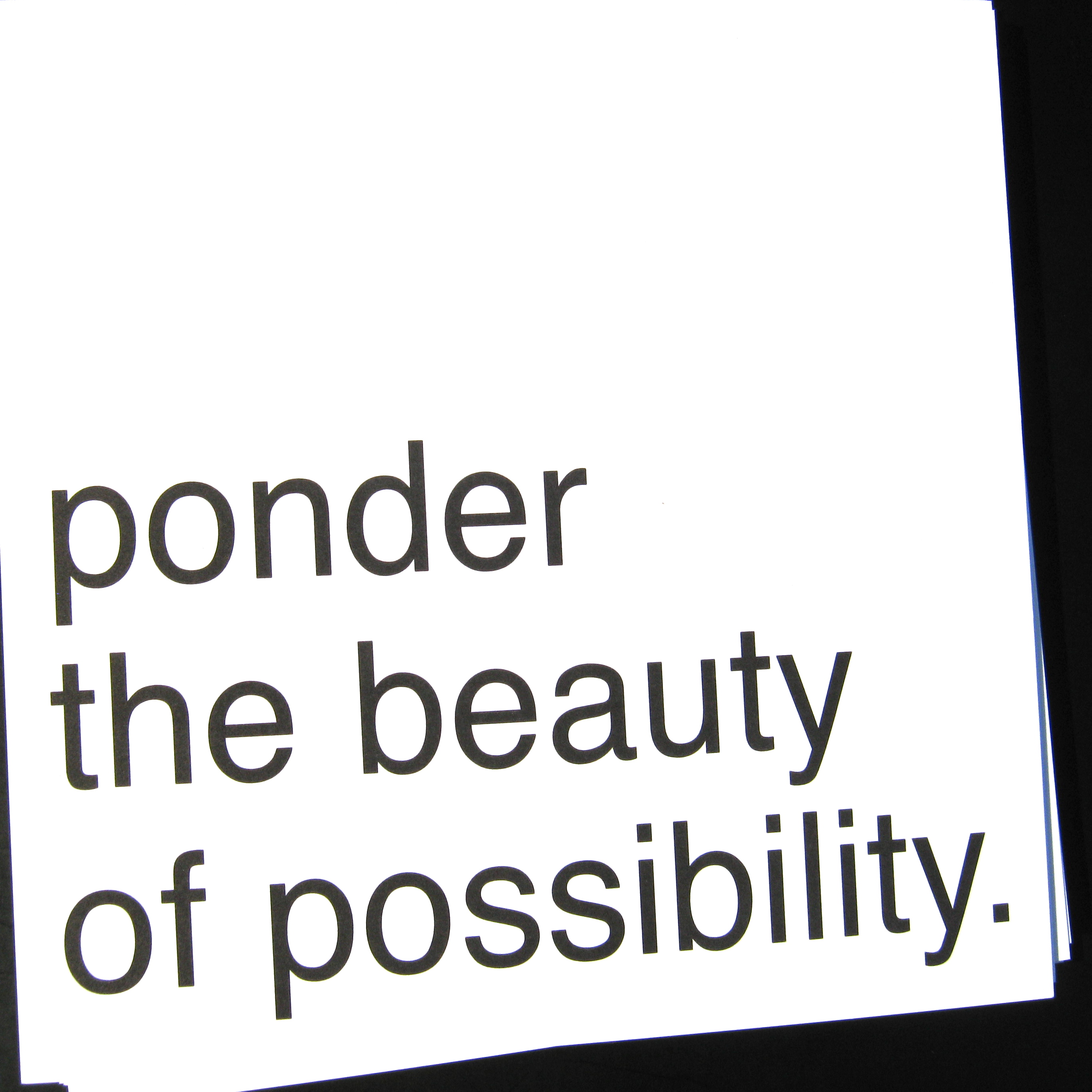 In the festive spirit, you can now buy a 10 pack of the Possibility note cards for your holiday card list ($34.) The back is left blank for your message. The card stock is high-quality heavy weight luscious. The sentiment works for your freakiest friends and your faithful granny.
