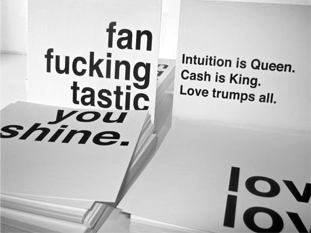 When an innovative and fun company comes along, I work with them to create inspirational content for their team or customers. It usually revolves around a printed book. Think: gorgeous, interactive 'authenticity workbooks' or 'manifestos of innovation'.