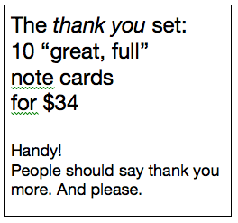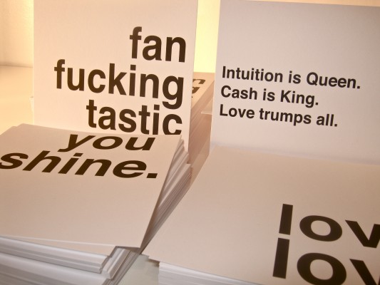 Classy meets sassy with these over-sized (6×6) single flat cards on heavy weight stock. Delicious quality. Revive the art of hand-written love - because e-cards suck and everyone knows it. Order plenty for yourself, and as sets to gift-wrap and give. Birthdays, hostess gifts, thank-you prezzies, love treats. Spread the bold love.